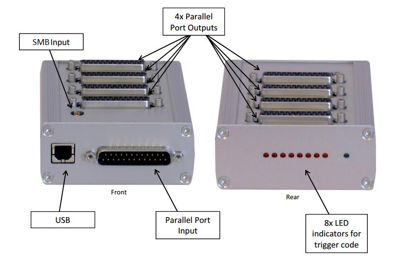 滿足您所有多模式事件觸發(fā)需求的解決方案。并行端口復(fù)制器允許將一個觸發(fā)信號從選擇的硬件或軟件發(fā)送到 4 個或更多獨立的測量模式。該設(shè)備配有簡單的 USB 電源端口,允許用戶根據(jù)刺激時間點準(zhǔn)確比較多模態(tài)數(shù)據(jù)。