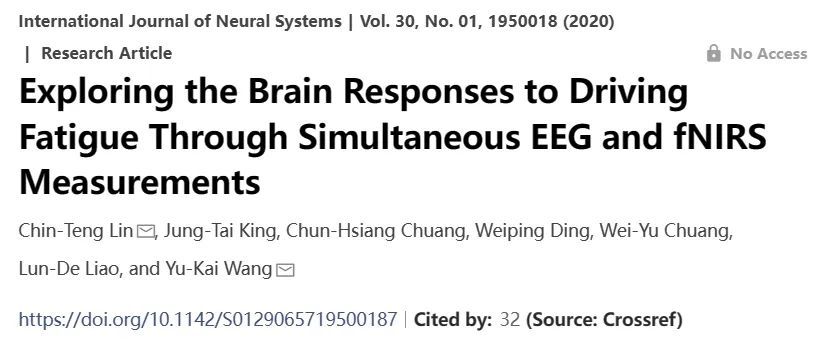 本研究Exploring the Brain Responses to Driving Fatigue Through Simultaneous EEG and fNIRS Measurements 發(fā)表于2020年的International Journal of Neural Systems(IF:8.0)。