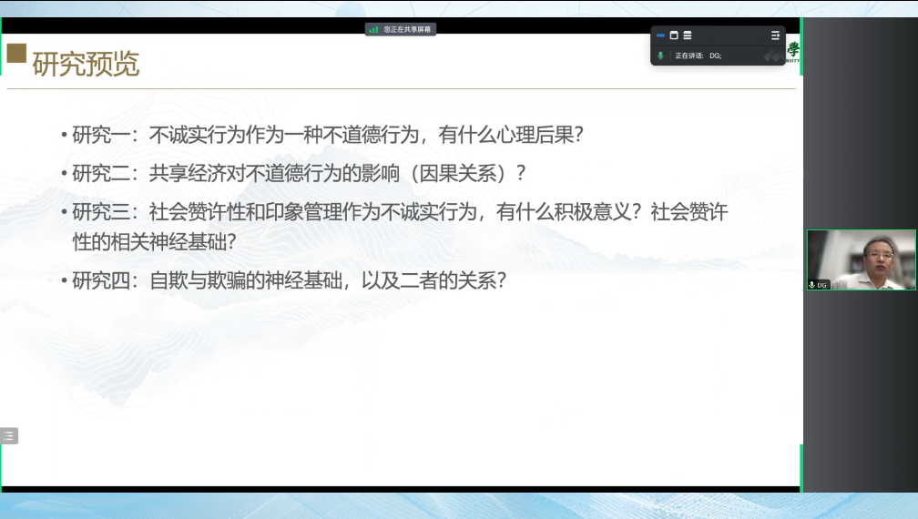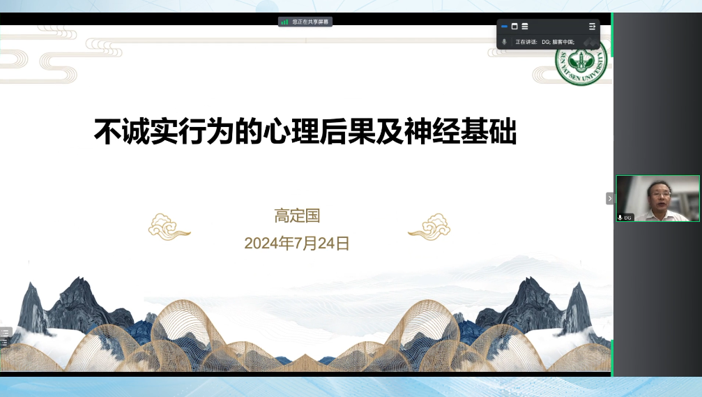 2024年7月24日晚20點,中山大學心理學二級教授高定國老師作為腦客中國科研第152位講者為大家帶來主題為《不誠實行為的心理后果及神經基礎》的報告。以下內容節選自直播視頻:
