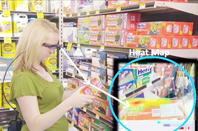 眼動儀可以將顧客注視廣告時的眼動軌跡記錄下來,通過分析記錄的數據,可以清楚地了解顧客注視廣告時的先后順序,對畫面的某一部分(分析結果時可以劃分興趣區間)的注視時間、注視次數、眼跳距離、瞳孔直徑(面積)變化等。并以此來分析廣告觀看者的心理活動,這有助于廣告商了解到廣告受眾是否按廣告制作人的意圖去注視廣告,是否漏看了廣告主(出資人)最為關注的諸如公司名稱、商品名稱及與眾不同的特點、品牌標記等重要信息。通過眼動分析可以為廣告設計者對廣告布局(重要信息的位置)、插圖和文案進行合理的安排提供有用的依據,也為評價廣告設計效果提供了客觀指標。