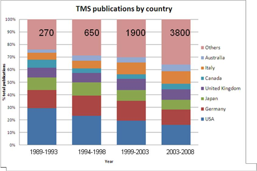 TMS 在神經科學研究和臨床治療方面有廣泛的應用。比如 rTMS 可以活化或抑制特定區域;用于研究認知,腦與行為的關系;治療功能性障礙疾病(如抑郁,耳鳴,疼痛等)和大腦的代謝功能紊亂;用于訓練周邊肌肉,也可以緩解肌肉的功能退化。在美國 rTMS 已被 FDA 批準用于抑郁癥的單藥治療。目前世界上已有超過 3000 個機構在使用 TMS 刺激器用于科研,診斷和治療。