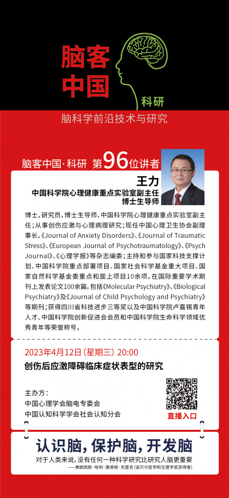 【直播預(yù)告】 本周三晚20點 王力:創(chuàng)傷后應(yīng)激障礙臨床癥狀表型的研究