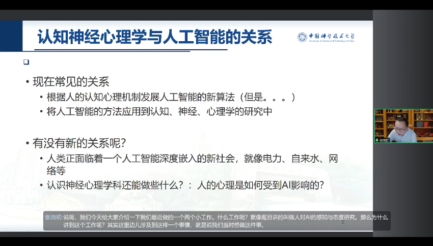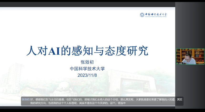 2023年11月8日晚20點,中國科學技術大學生命科學與醫學部教授張效初作為腦客中國科研第123位講者為大家帶來主題為《人對人工智能地感知和態度》的報告。