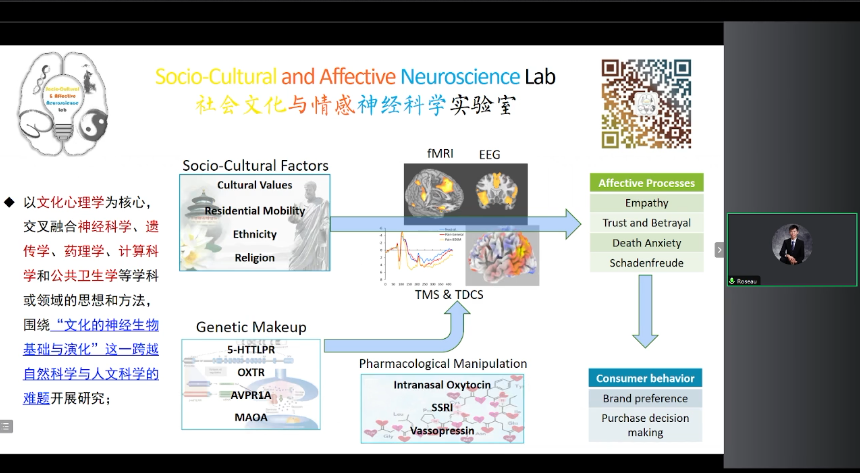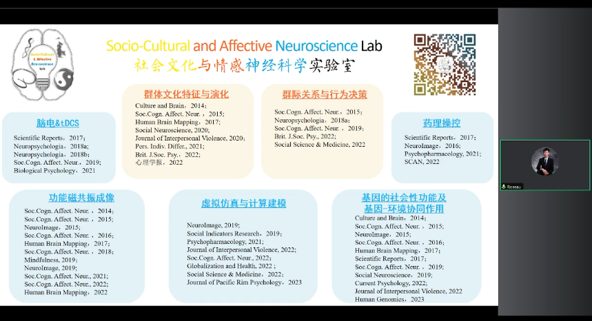 我們課題組叫社會文化與情感神經科學實驗室,主要是圍繞文化心理學的一些研究主題開展研究。不但會使用心理學的傳統研究方法,而且還會交叉融合到神經科學、遺傳學、藥理學、計算科學及公共衛生學的一些理論以及方法,來開展這種交叉科學的研究工作。