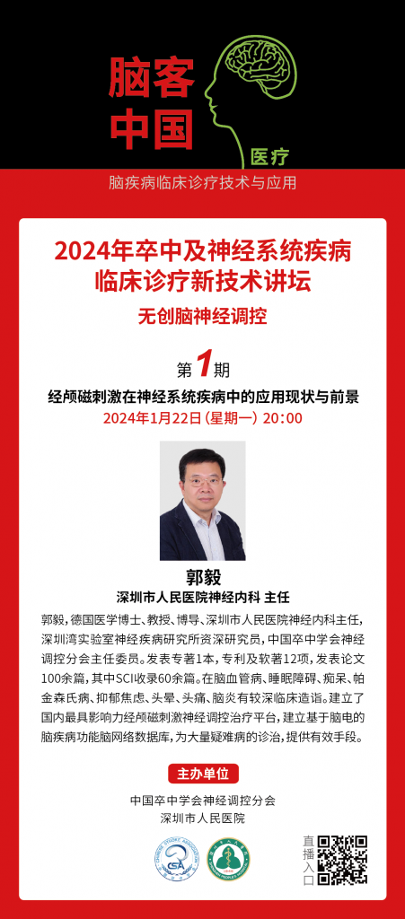 【直播預告】2024年1月22日晚20點 郭毅:經顱磁刺激在神經系統疾病中的應用現狀與前景