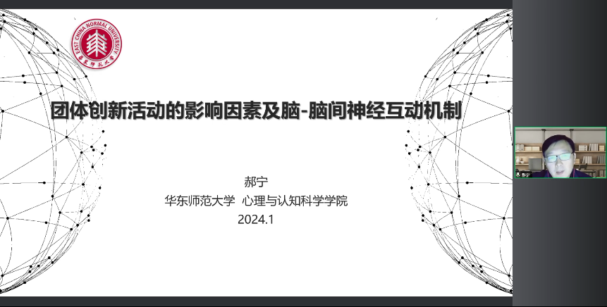 2024年1月24日晚20點,華東師范大學心理與認知科學學院教授、博士生導師郝寧作為腦客中國科研第132位講者為大家帶來主題為《團體創新活動的影響因素及腦-腦間神經互動機制》的報告。以下內容節選自直播視頻: