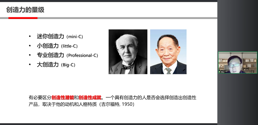 當我們討論創造力時,經常會有疑問是不是兒童比成人有創造力,兒童的創造力是不是被淹沒了?但其實創造力它是分量級的。每一種量級,它發生的機制、影響的因素其實都是不一樣的。