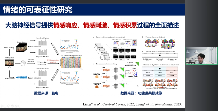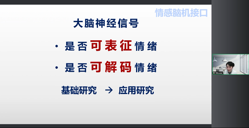 一個(gè)領(lǐng)域是從神經(jīng)機(jī)理的角度來研究,到底我們的大腦神經(jīng)信號(hào)是不是可以有效的來表征人情緒的各個(gè)維度。大家都知道情緒是復(fù)雜多變的,怎么樣精準(zhǔn)地去跟蹤到它微妙的情緒變化,到底大腦神經(jīng)信號(hào)它提不提供這種支撐? 這是我們需要解決的第一個(gè)問題。