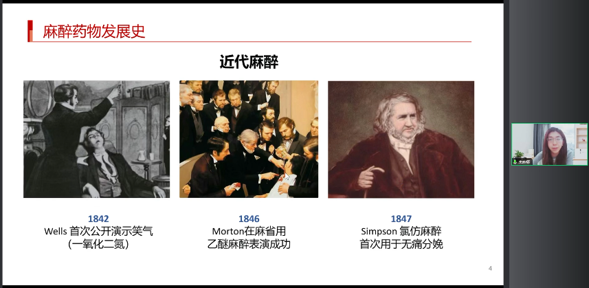 十九世紀中葉,其實是近代麻醉醫學的一個開端。1842年,美國的牙醫Wells首次公開演示了笑氣的麻醉效果;1846年,Morton在波士頓麻省總醫院也成功演示了乙醚作為吸入麻醉劑的使用,這標志著現代麻醉學的誕生;1847年蘇格蘭的醫生Simpson發現了氯仿的麻醉效果,并首次用于無痛分娩。