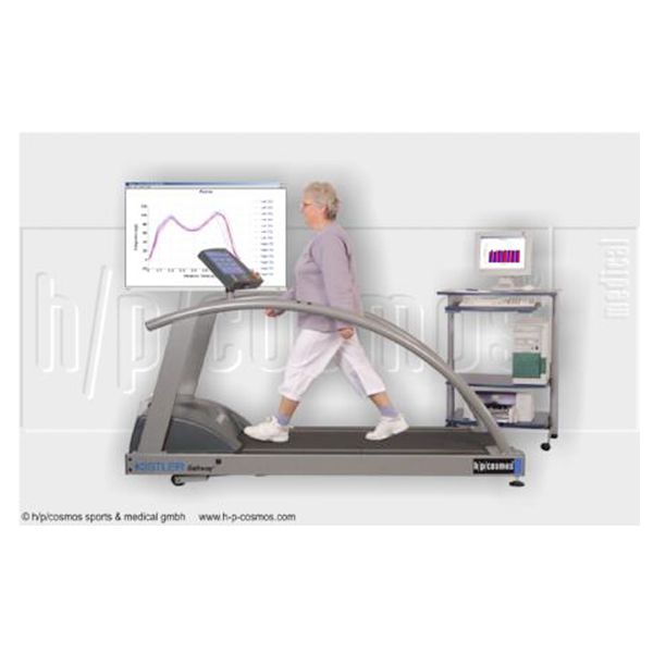 h/p cosmos gaitway II 將壓電晶體測力臺裝入跑臺中,使跑臺能連續測量跑步和行走中的地面垂直反作用力、壓力中心、雙腳足底沖擊等參數。Gaitway II 內置的瑞士Kistler測力板,Kistler測力板廣泛應用于醫學、體育學的步態研究中,在測量地面支撐反作用力方面已經成為世界標準。將測力板裝在跑臺上進行步態分析有很多優點,傳統方法是將測力臺固定在地面上,只能進行1~2步的步態分析,然而我們將測力臺裝在跑臺上以后,就能進行連續的步態分析,更接近于日常生活和訓練時的狀態。